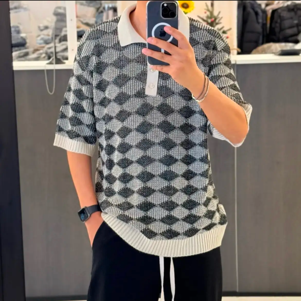 Maglioncino t-shirt con bordini bianchi, fantasia a rombi dalla S alla XL